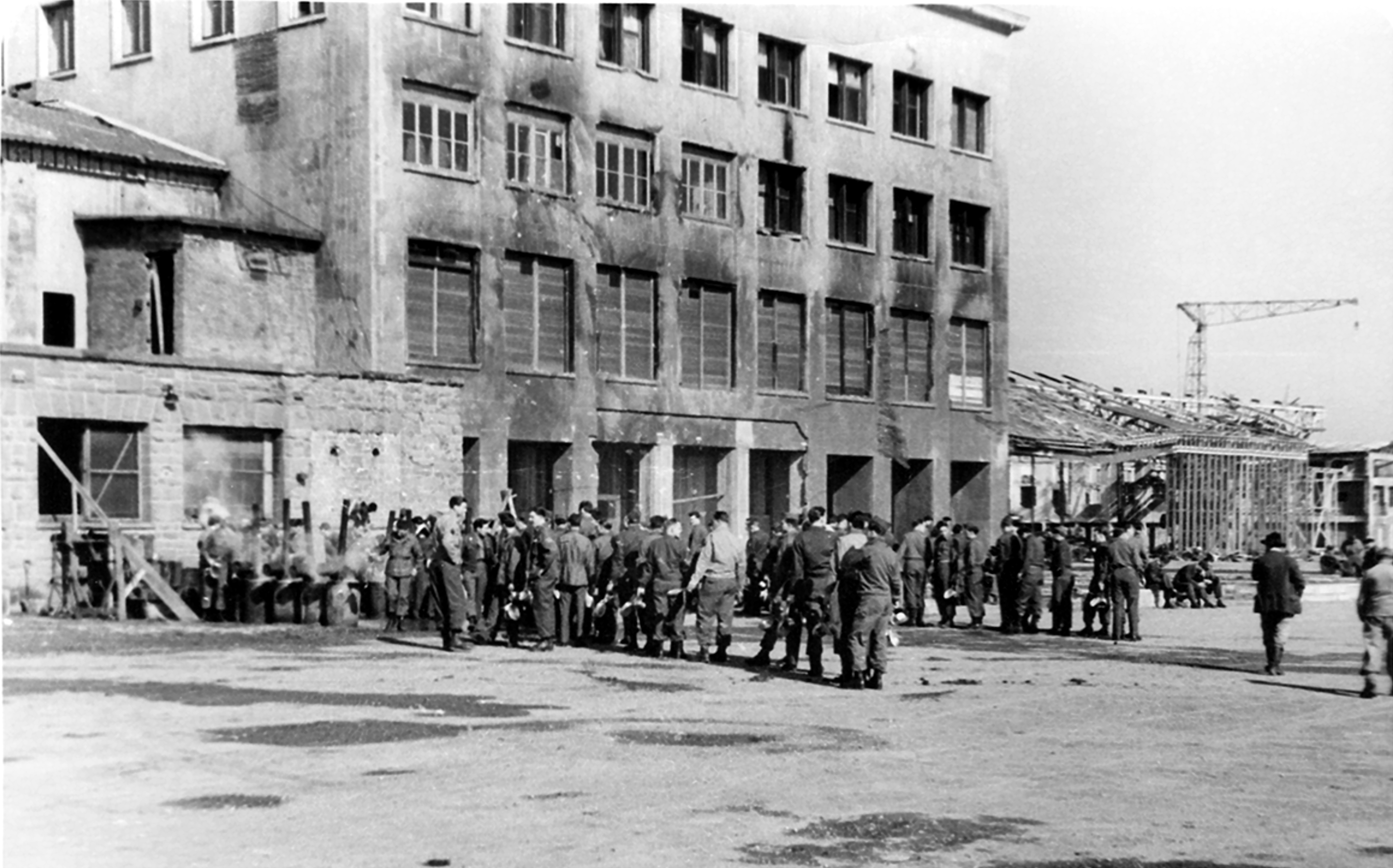 Das Fernheizwerk erregt Bewunderung Ein besonder interessantes technisches Problem bildet die Beheizung des insgesamt 952 Meter langen Gebäudekomülxes. Aus luftschutztechnischen wie aus Ersparnisgründen – pro Heizperiode müßten zwei ganze Güterzüge Kohlen von der Bahn auf Lastwagen verladen werden – wurde das Heizkraftwerk als selbstständige Einheit in einigen hundert Metern Enfernung errichtet. Von hier aus – das Fernheizwerk ist eine Hochdruckdampfanlage – wird die Wärmeenergie in rund 800 Meter langer Rohrleitung durch einen mannshohen unterirdischen Tunnel, der ständig begehbar ist, zun Mittelbau geführt, wo je nach Anwendung eine ganze Reihe verschiedener Heizungsaggegrate angeschlossen sind. Die Wärmeenergie wird teils in Warmwasser, teils in Warmluft umgesetzt.